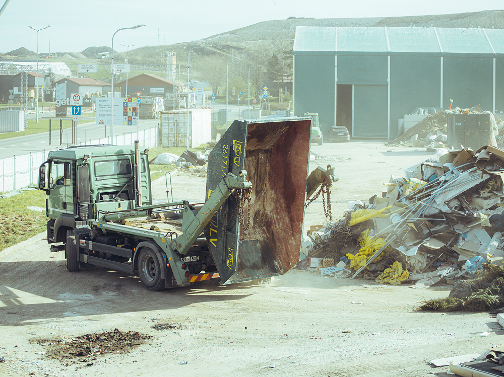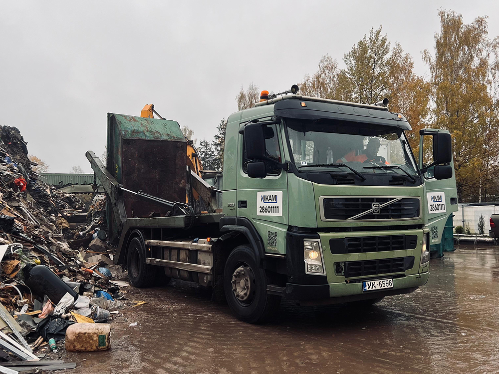 Konteineru iznomāšana un izvešana būvgružiem Rīgā. Konteiners tiek izņemts jebkurā laikā, kad to pieprasa klients.